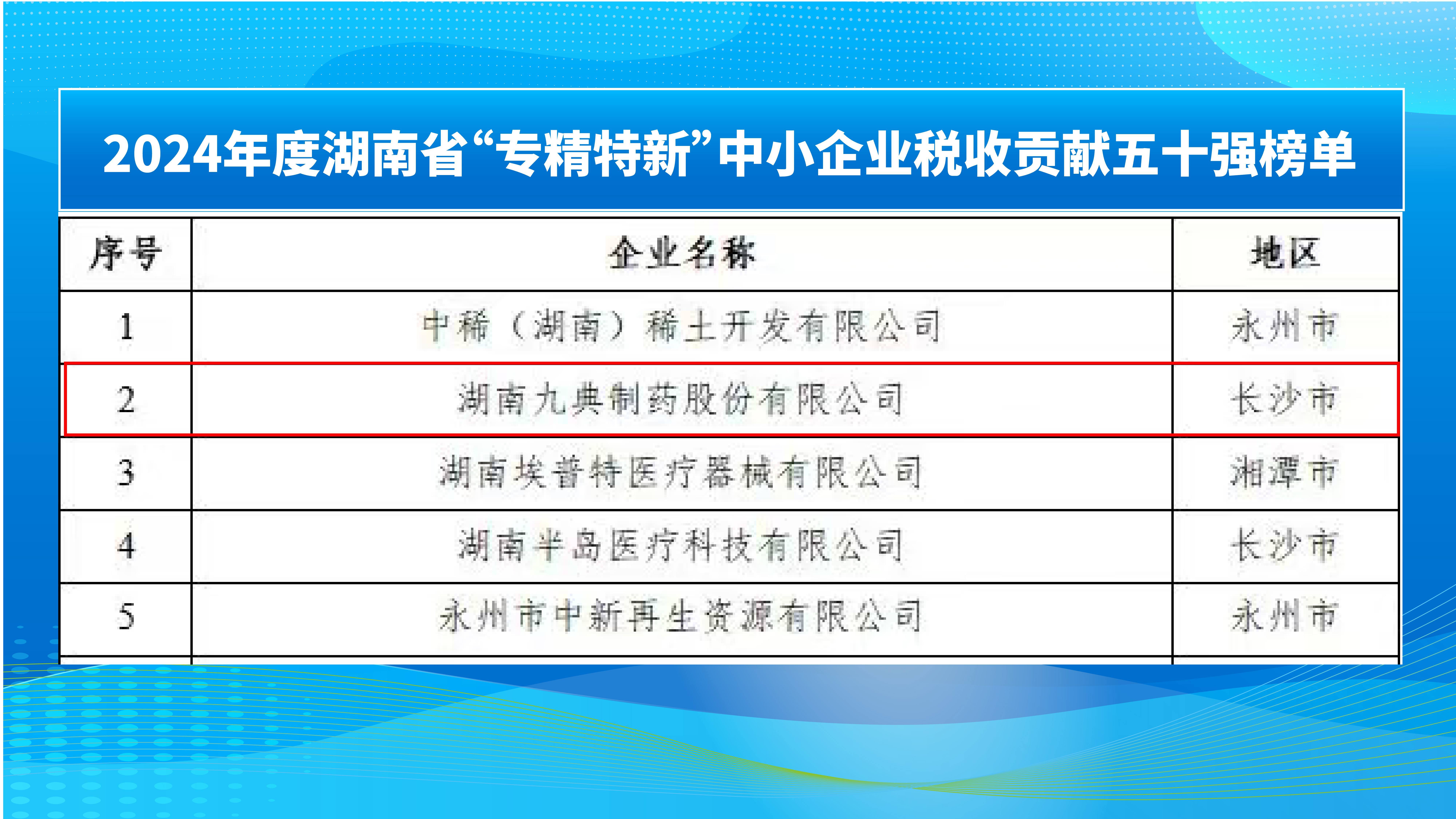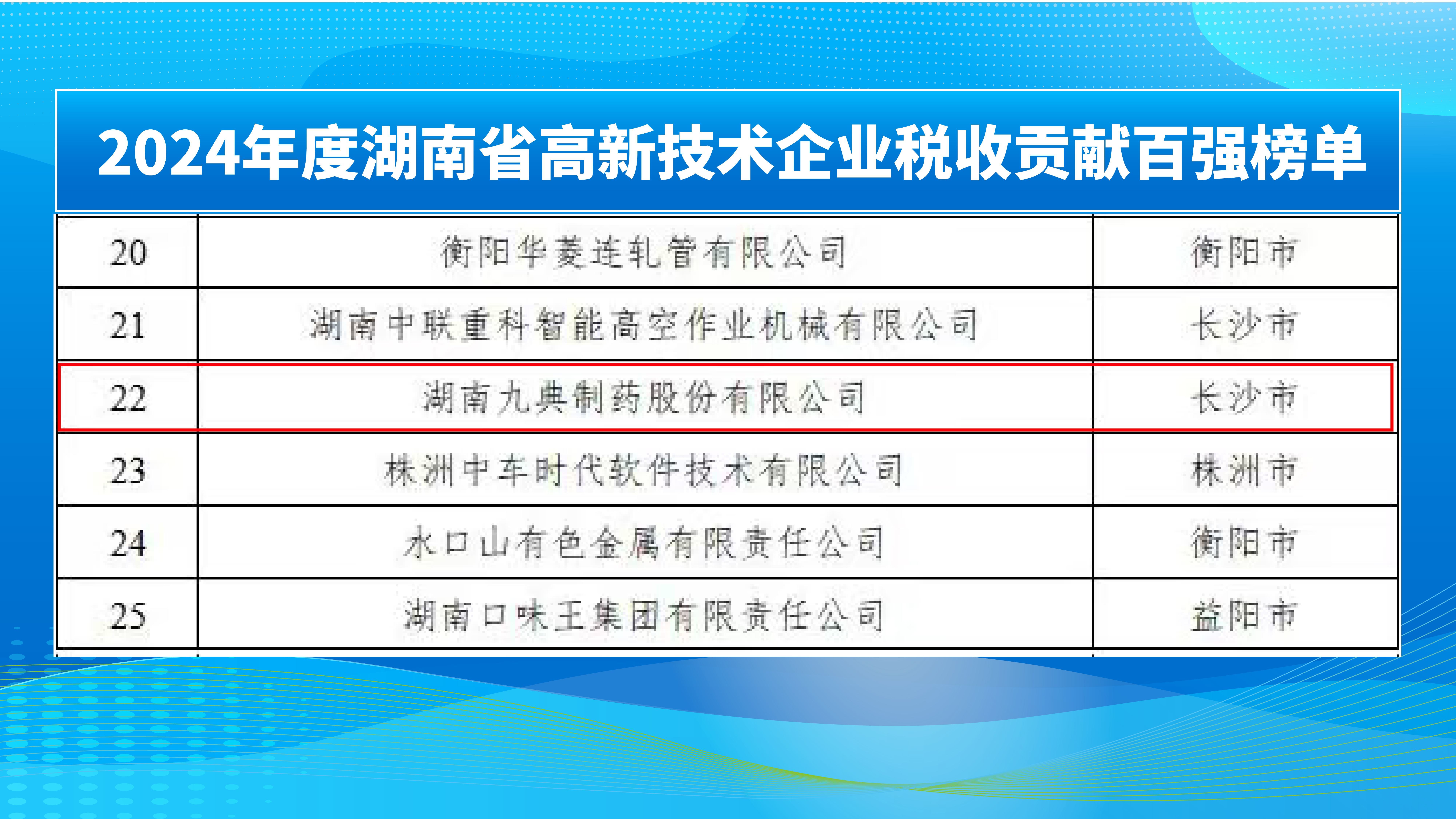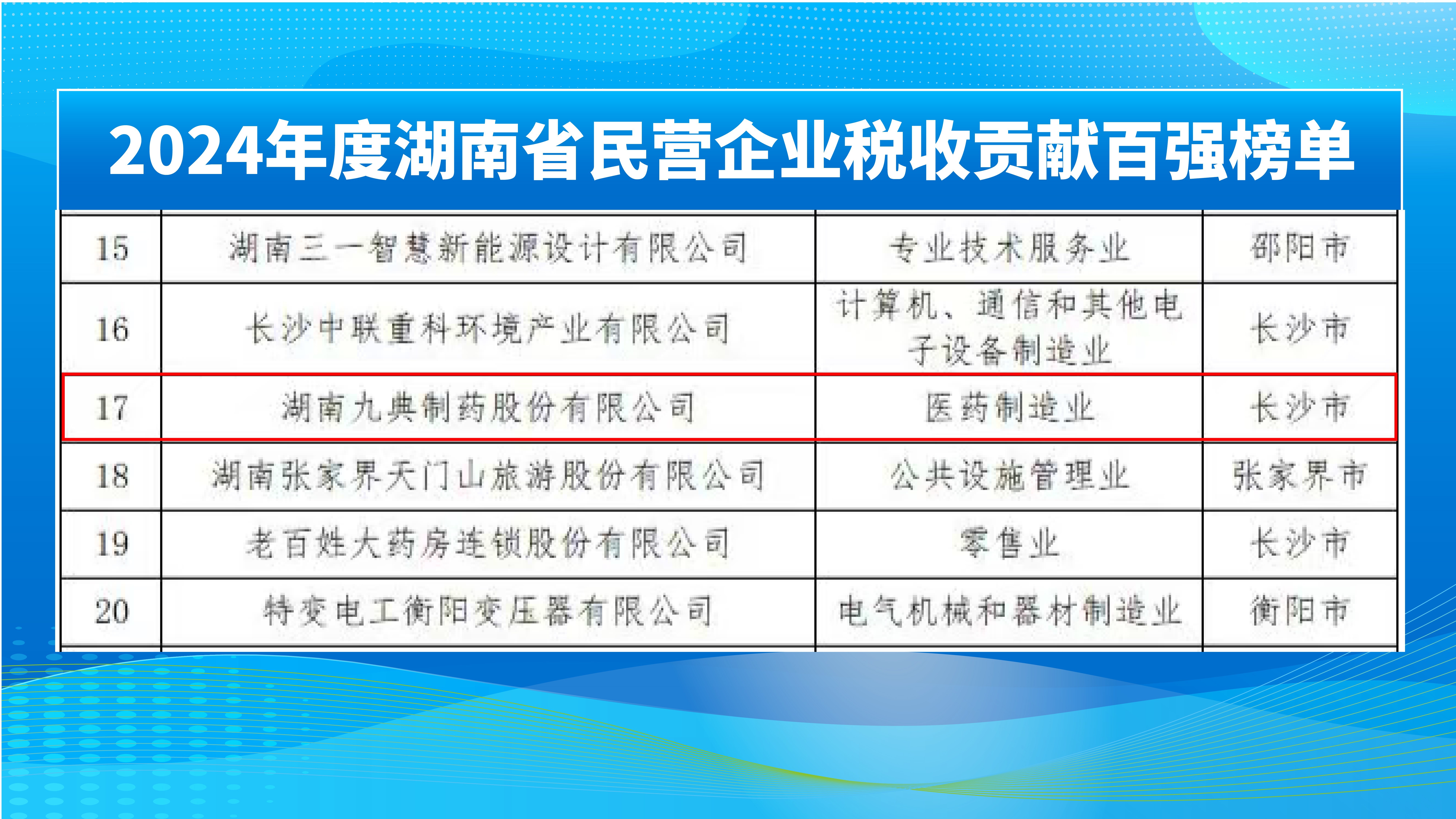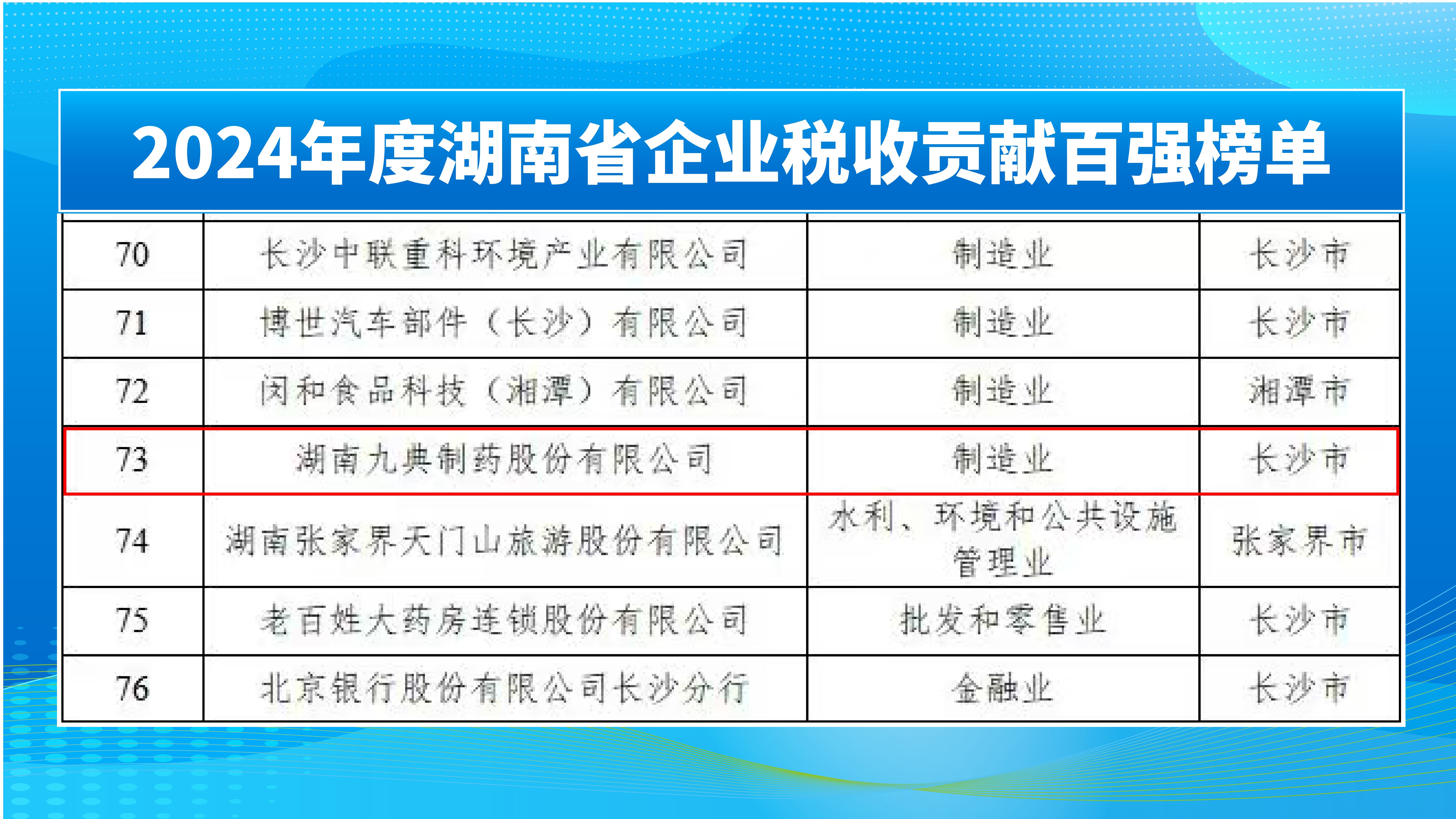 九典制药连续上榜湖南省企业税收贡献“四张榜单”